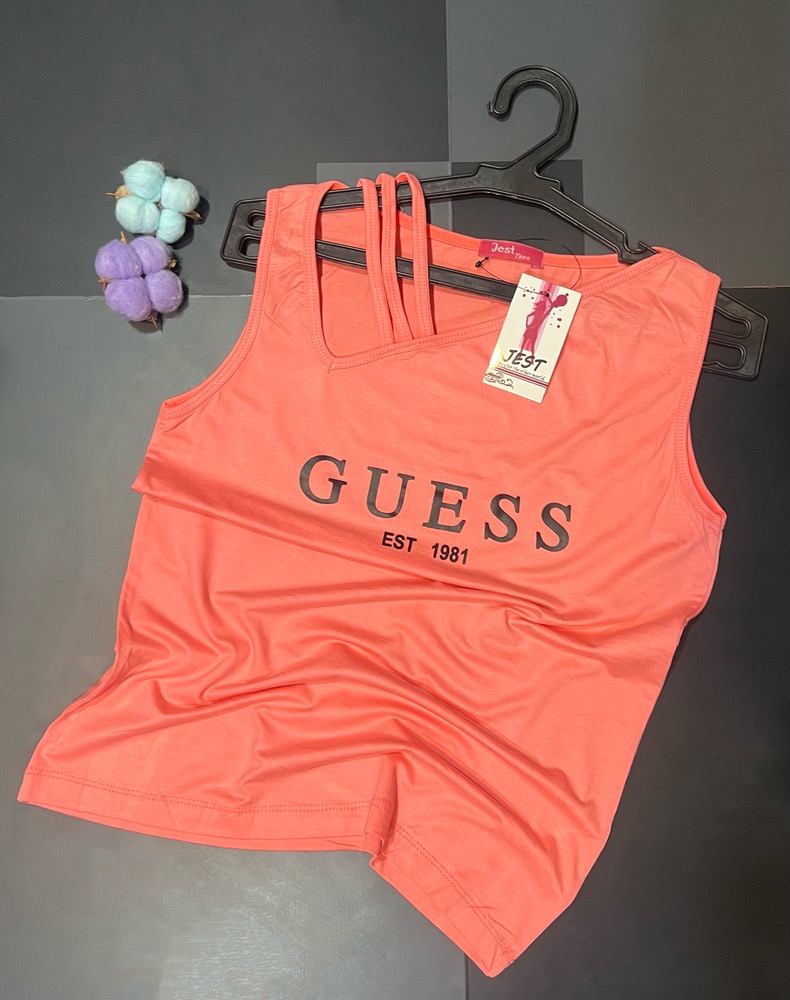 تاپ Guess | کد: ۱۱۲۱ ⚜️جنس : ویکسوز پنبه ⚜️بدون رنگ دهی❌ ⚜️بدون آبرفت❌ ⚜️رنگبندی: صورتی | گلبهی | کرم | طوسی روشن | مشکی بها : ۳۵۰